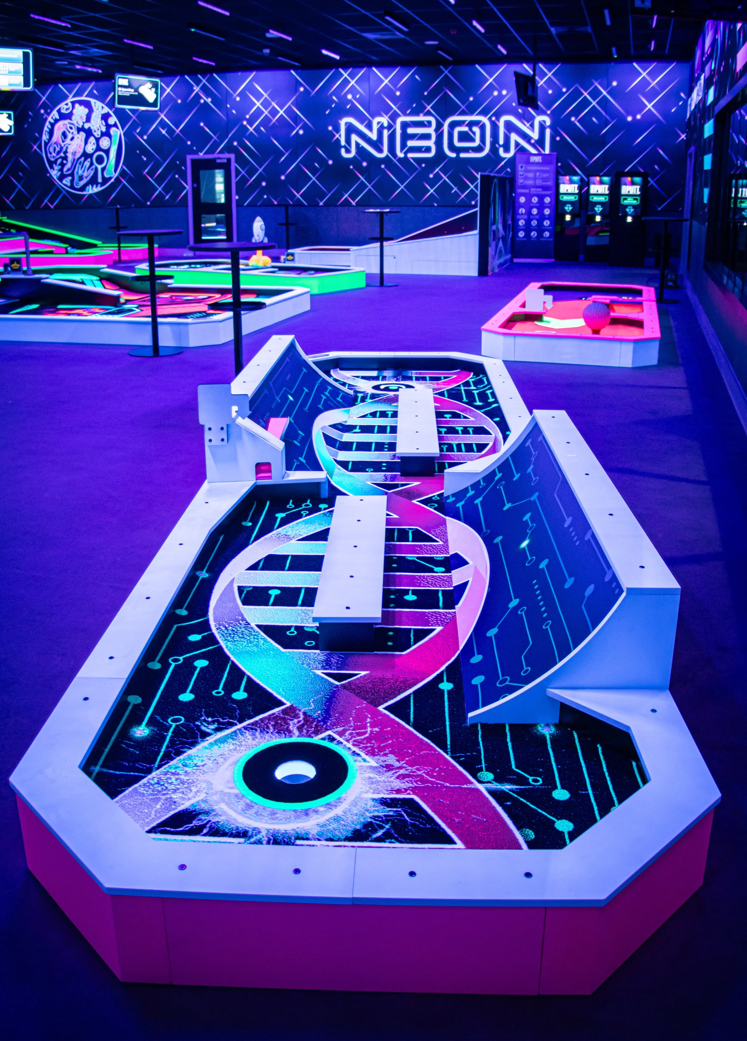 Our technology-infused mini-golf delivers a thrilling competitive social experience featuring automated stroke counting and high-scoring action!
